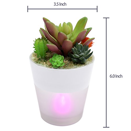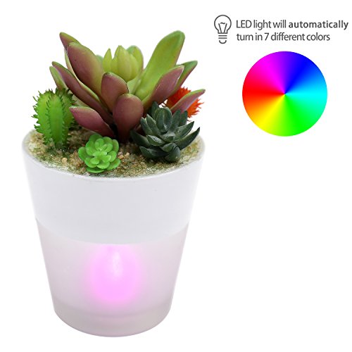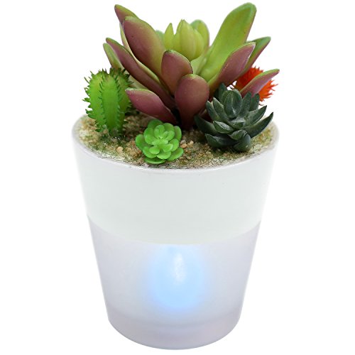 6-Inch Artificial Succulent Arrangement with Translucent Ceramic Color-Shifting LED Light Planter Cup