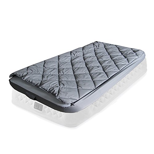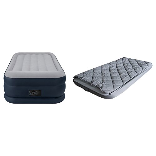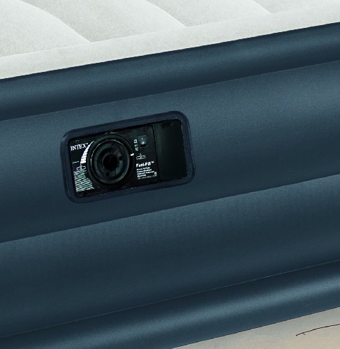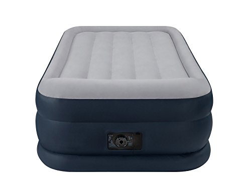 Studio : INTEX Publisher : INTEX Product Description A deluxe version of Intex's popular classic, this Intex Deluxe Twin Air Mattress With Built-In Pump And Pillow Rest is one luxurious air mattress. Your guests will want to visit frequently after using this deluxe air mattress at your house. Not only does its neutral color complement any room, the soft, plush surface and 2-inch built-in pillow provide you with a 5-star night of catching ZZz's. The high-powered, built-in pump inflates the mattress in a matter of minutes to your desired firmness. The construction provides support and firmness that other air mattresses lack and it holds up to 300 pounds. It is waterproof with vinyl beams, sturdy construction, and has indented sides to keep your fitted sheets in place. It deflates completely and comes with a handy carrying bag. This bed provides all of the great benefits of the Intex Raised Downy air mattress, but with the added advantage of lighter weight and mid-rise height. Wherever you close your eyes, sleep calm and dream on with this Intex Deluxe Twin Air Mattress With Built-In Pump And Pillow Rest. Get your bed set up in no-time with the included bedding kit. The Tahoe Gear Twin-Sized Bed Kit provides the 1-stop solution for air mattress use (mattress not included). Don't worry about finding a fitted sheet, cover sheet, and blanket for your air bed, this kit provides it all! 0