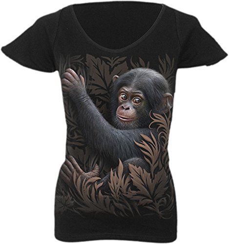 -. Title : Monkey Business, gothic metal fantasy aap dames top met kap mouwen en V-nek zwart