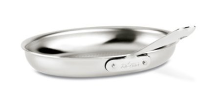 Studio : BigKitchen Publisher : BigKitchen Product Description Grill up fish to impress even a professional chef with this oval fish pan from All-Clad. This stainless steel pan has an oval shape that is designed specifically to suit the elongated shape of most fish. However, it is also well suited for cooking steak, shrimp, scallops and omelets as well. The long handle keeps your hands away from the heat of the open flame while pan frying, searing, baking, or broiling and makes for easy transfer from oven to table. The pan is oven safe, works on induction cook tops, and is safe for the dishwasher. 12" W 0