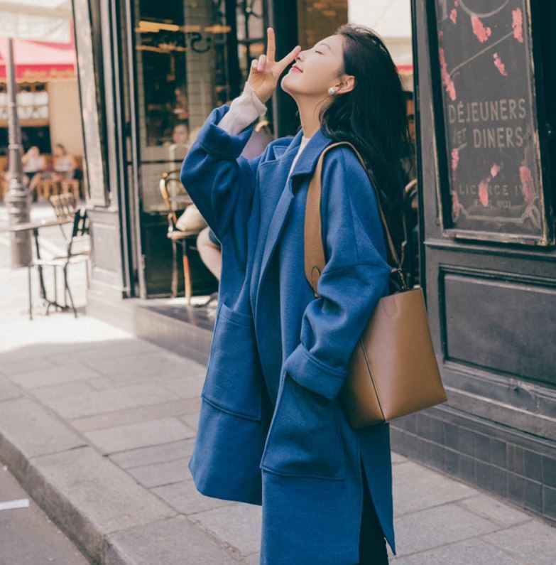 目に鮮やかなロイヤルブルーがお洒落なミドル丈コート☆