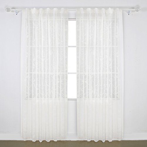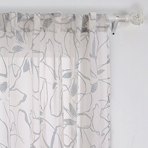 Deconovo Back Tab Cotton Sheer Curtains with Floral Pattern