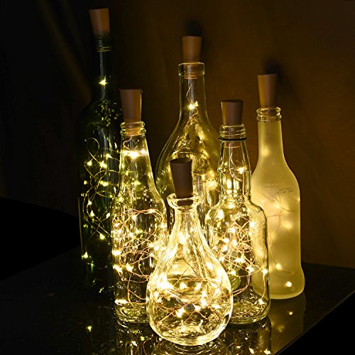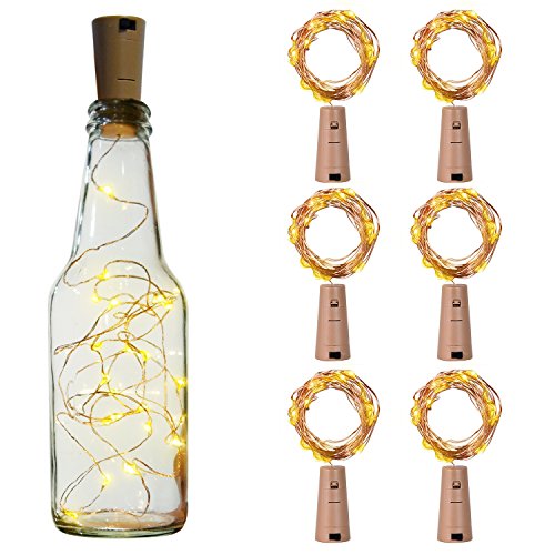 LightsEtc 6 Pack 20 Led 6.5ft Wine Bottle String Lights Warm White Copper Wire Cork Lights