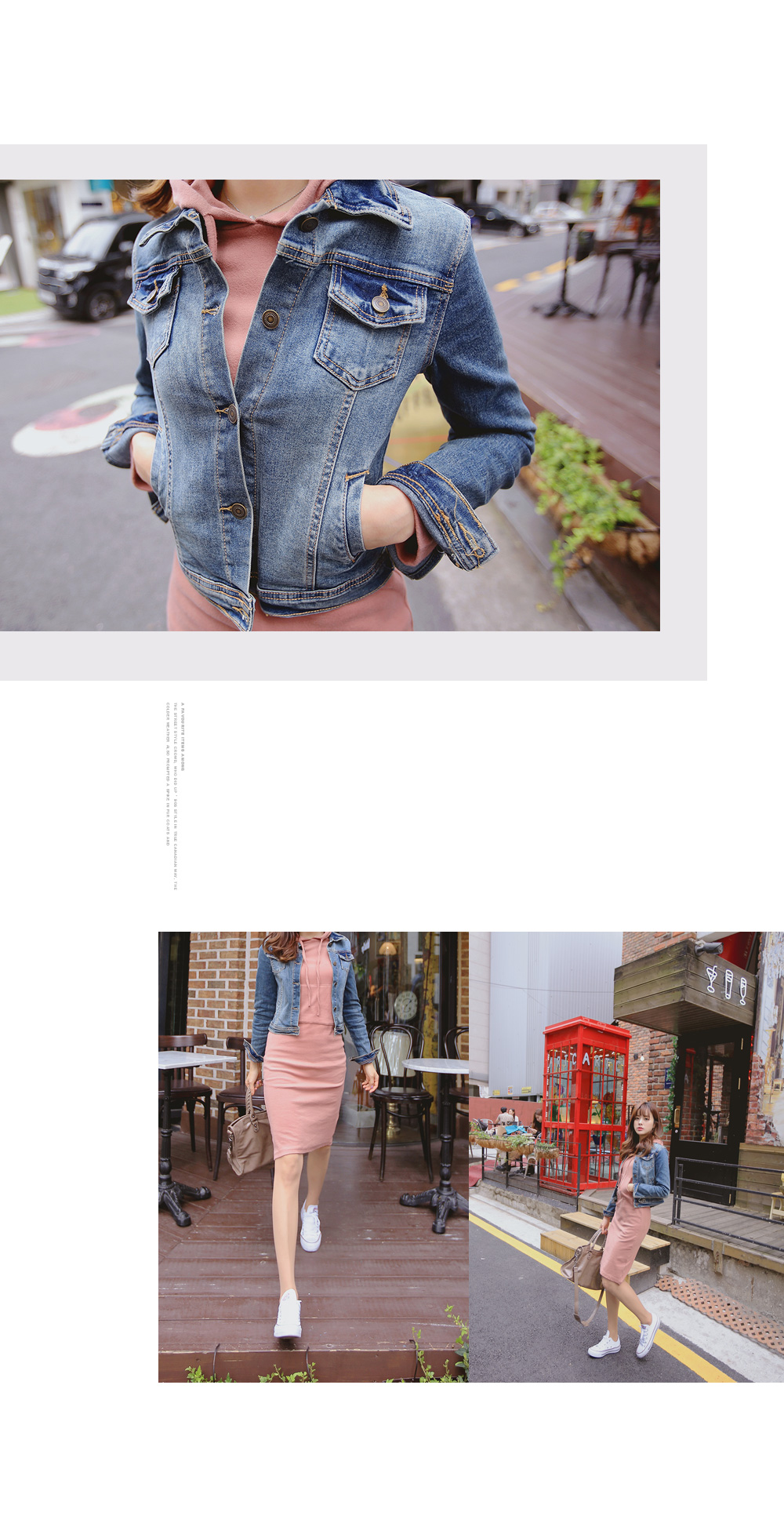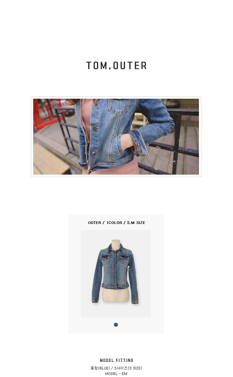 슬림한 라인의 데님 자켓을 소개합니다.매 시즌 인기 좋은 데님자켓으로깔끔하고 슬림한 라인으로 제작되어 입었을때 더욱 예쁘며 날씬하게 연출해준답니다.단추 디테일로 오픈, 클로징을 도와주며포켓 디테일이 더해져 밋밋함을 없애주었어요.베이직한 디자인으로 제작되어 유행을 타지 않아오랫동안 착용하기 좋으며다양한 코디에 매치하여 여러가지 분위기로 연출하기 좋아활용도가 높은 아이템이에요.컬러는 중청 1 가지로 구성되었으며 S, M 사이즈로 제작되었답니다.