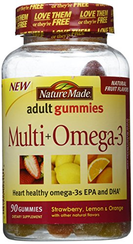 -. Binding : Health and Beauty -. Brand : Nature Made -. Feature : Made with natural fruit flavors that adults prefer, Nature Made Adult Gummies are a great tasting way to take your vitamins / Nature Made -. Label : Nature Made -. Manufacturer : Nature Made -. ProductGroup : Health and Beauty -. ProductTypeName : HEALTH_PERSONAL_CARE -. Publisher : Nature Made -. Studio : Nature Made -. Title : Nature Made Multi+Omega3 Adult Gummies Strawberry Lemon & Orange -- 90 Gummies