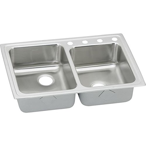 Elkay LRAD250654 18 Gauge Stainless Steel Double Bowl Top Mount Kitchen Sink, 33" x 22" x6.5"