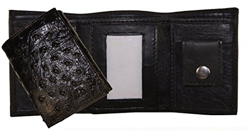 -. Title : AG Wallets Kids Genuine Leather Ostrich Imprint Tri Fold Wallet 3" x 2.5" (Black)