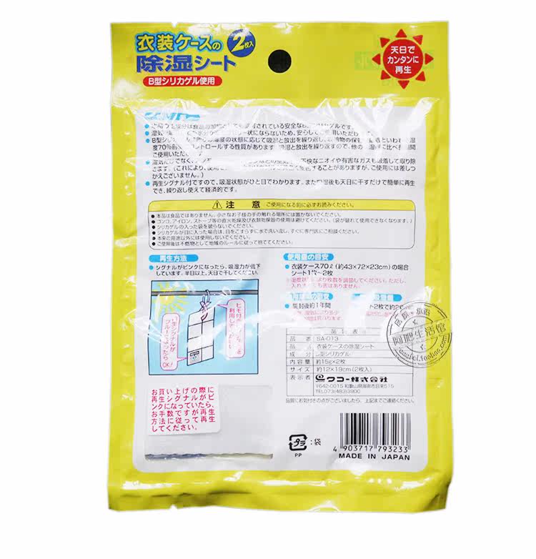 Japan imports suitcase wardrobe desiccant desiccant dehumidification agent mildew proof agent reusable clothing Placement: Plane Imported from Japan】 【suitcase renewable desiccant, with a new high-quality materials, professional luggage for deodorization and dehumidification, wide application, can be placed anywhere. Desiccant can be used repeatedly, environmental health, blue for good, when the label turns pink, simply place in the sun after the moisture can simply regenerate.