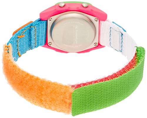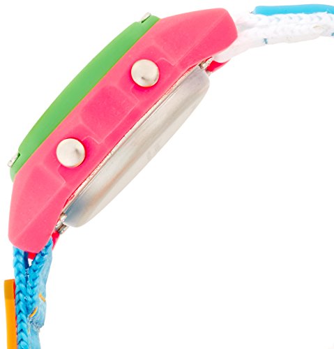 Japanese quartz digital movement, lap counter, alarm, countdown timer/stopwatch, standard digital functions and backlight, polycarbonate case with hyrdro-pushers (able to be pushed under-water), comfortable and durable canvas synthetic strap with solid stainless-steel buckle and canvas keeper