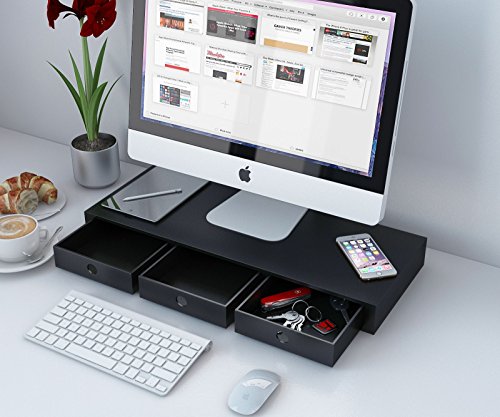 Flat Panel Monitor Riser Stand , Space Saver Workstation , Multipurpose Desk Shelf Organizer with 3 Drawers (Black)