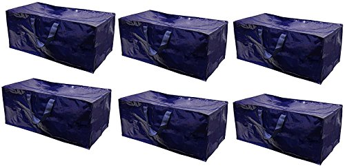 Earthwise Storage Bags Extra Large Heavy Duty Reusable Moving Totes w/ Zipper closure Backpack Carrying Handles - Compatible with IKEA Frakta Hand Carts Boxes Bin ( Pack of 6 )