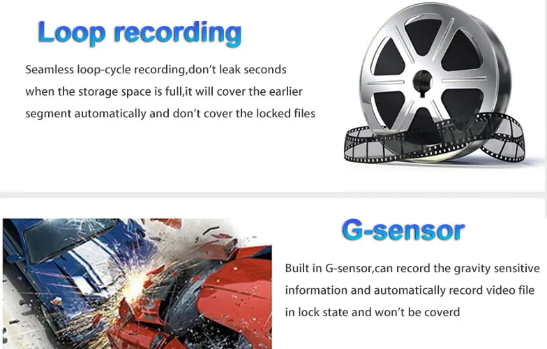 | Packing included | car dvr, car charger,3M sticker, user manual |