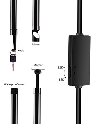 - 【WELL-EQUIPPED ACCESSORIES】For assist inspection camera, we supply complete accessories: mirror, hook, magnet and waterproof lid. They can help you handle with different complicated environment.