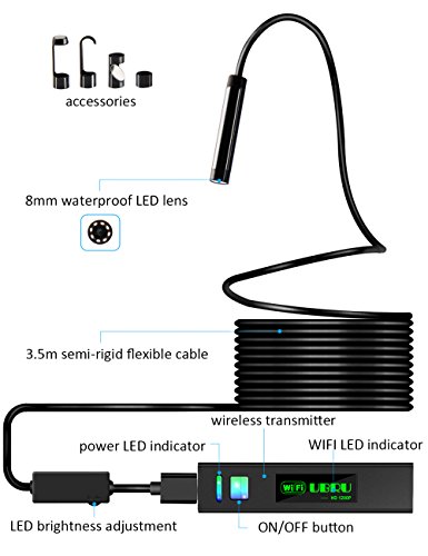 - 【UNITVERSAL COMPATIBILITY】Not like traditional wired endoscope, this newest borescope has WIFI box to transmit WIFI signal to your IOS/Android/Windows/Mac/Tablet.It support 4 devices to the borescope at the same time.( Samsung Huawei Android Above 4.2+, iPhone 5c 5 6 6s 7 plus Above 7.0+)