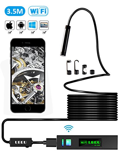 Endoscope iPhone Borescope iPhone, UBRU WIFI Inspection Camera 1200P HD IP68 Semi-Rigid Flexible Snake Camera for iOS Android Tablet Mac Windows to Inspecting Engine Sewer Pipe Vehicle 11.5FT