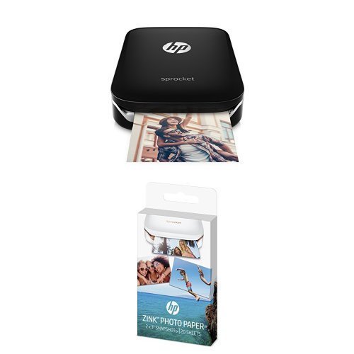 HP Sprocket Portable Photo Printer (black) with additional 40 sheets ZINK Sticky-Backed Photo Paper