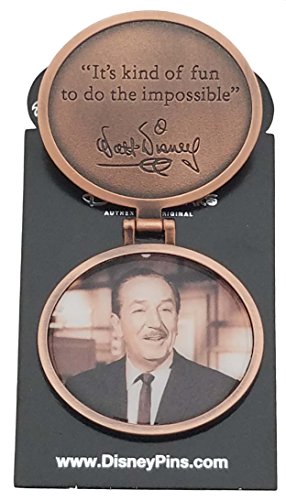 - When opened you will find a quote: "It's kind of fun to do the impossible" and Walt Disney's signature on the top half of the pin and a picture of Walt in a room with art work or other framed items on the walls behind him.