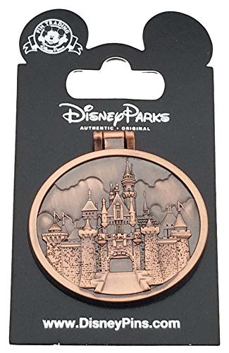 - This copper pin is hinged. On the cover is a relief of the Sleeping Beauty Castle from the Main Street point of view with clouds in the background