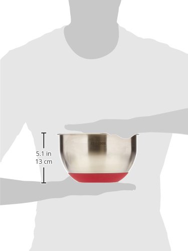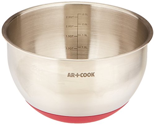 Art and Cook Stainless Steel Mixing Bowl with Non Skid Bottom, 3 quart, Red