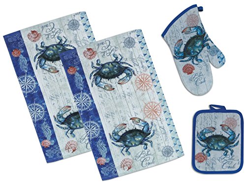 - "Crabfest" set includes 2 terrycloth towels, 1 oven mitt, and 1 potholder; all 100% cotton