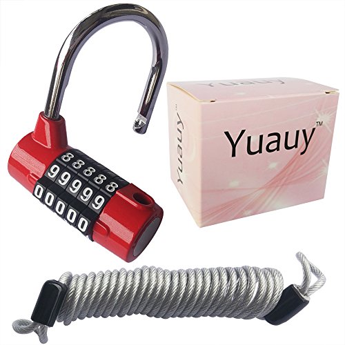 Yuauy Red 5 Dial Digit Resettable Combination Password Code Lock Padlock Sturdy Security for Suitcase Luggage Travel Baggage Backpack School & Employee Locker + Spring Reminder Cable