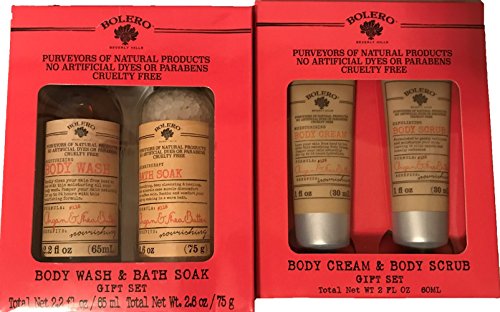 -. Feature : Bolero Bath Sets! / Three Different Sets! Two Scents! / Argan And Shea Butter! Coconut Milk And Milk! / Body Cream, Scrub, Wash And Soak! One Set Includes Bath Fizzer! / Very Refreshing!