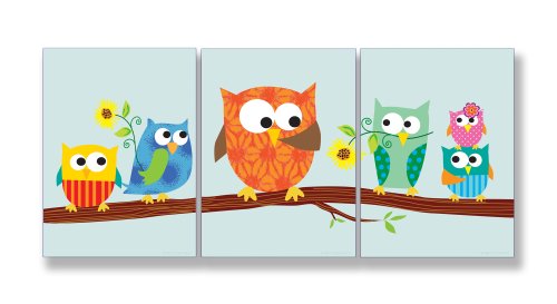 The Kids Room by Stupell Owls On A Branch With Sunflowers 3-Pc. Rectangle Wall Plaque Set, 11 x 0.5 x 15, Proudly Made in USA