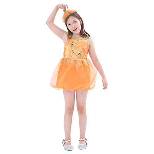 -. Title : Twinkle Pumpkin P.R.Incess, Girls Halloween Costume, Party Suits, 3Pcs (silk top, cap)