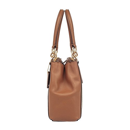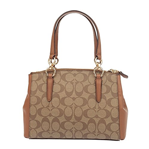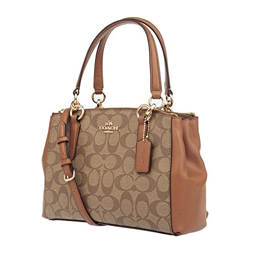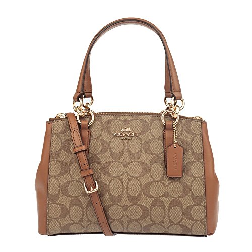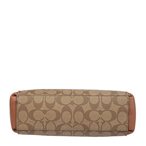 Signature coated canvas Inside zip, cell phone and multifunction pockets Zip-top closure, fabric lining Handle with drop Strap with long drop for shoulder or crossbody wear