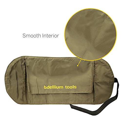 Comes with a roll-up storage train pouch (21 x 9.5 inches; 54 x 24 cm) with a black exterior and brown interior