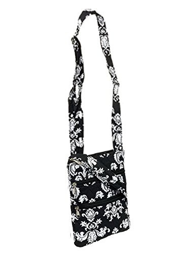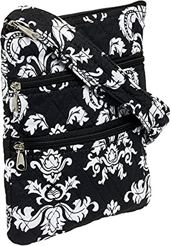 Travel Quilted Cotton Shoulder Swing Bag - 9 inches Black White Damask Design