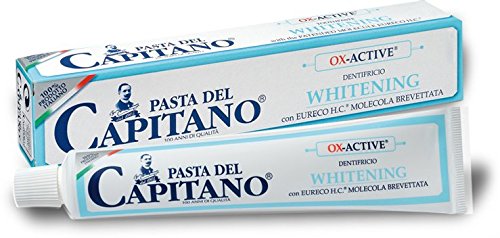 PASTA DEL CAPITANO: "WHITENING" OX-ACTIVE TOOTHPASTE, SLS FREE * 2.53 FLUID OUNCES (75ML) TUBES (PACK OF 4) * [ ITALIAN IMPORT ]