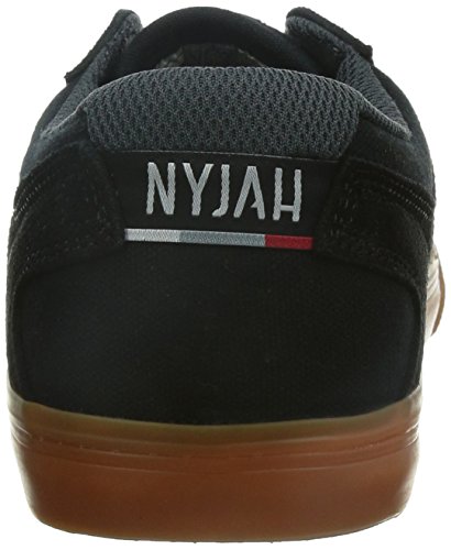 Product Description Transformed from a cupsole to a vulcanized construction skate shoe, Nyjah Huston's updated signature shoe, the DC Nyjah Vulc offers even more flexibility and amazing board feel. It's created with a heavy duty suede upper 0
