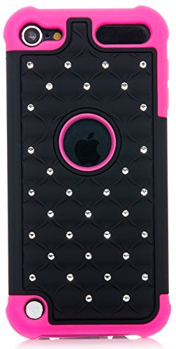 iSee Case (TM) Hybrid Luxurious Lattice Dazzling Bling Bling Dual Layer Combo Case for Apple iPod Touch 6 6th Generation / iPod Touch 5 5th Generation(it6-Hybrid Star Purple on Black)