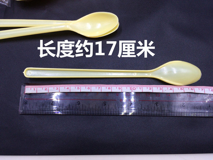 一次性咖啡奶茶店烧仙草搅拌长勺子长把柄塑料黄色调羹汤匙