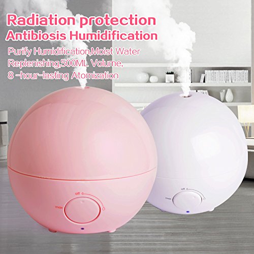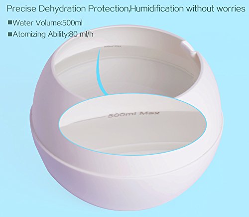 •★SUITABLE CAPACITY AND SUITABLE MIST OUTPUT : This humidifier can hold up to 500ml water and run continuously for 8 hours. Atomizing ability is 80ML per hour max(If more than 80ML per hour ,it will become water drop on desk around the humidifier . we tested it thousands time to get this data.
