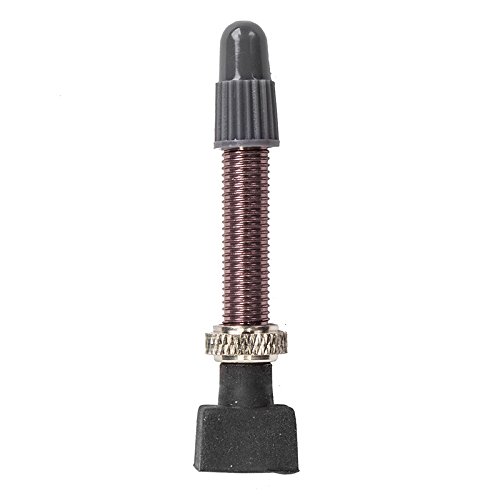 Product Description Aluminum presta tubeless valves . Large o-ring to contour the rim surface for an air tight seal. Removable valve core for installing sealant. 40mm long, Gray anodized color. 0