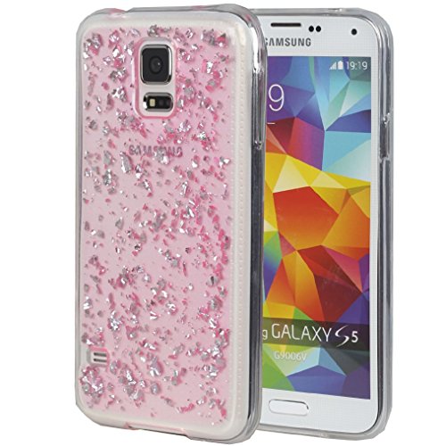 S5 Case, Galaxy S5 Case, iYCK Luxury Bling Glitter Sparkle [Gold Foil Embedded] Transparent Flexible Soft Rubber Gel TPU Protective Shell Hybrid Bumper Case Cover for Samsung Galaxy S5 - Pink