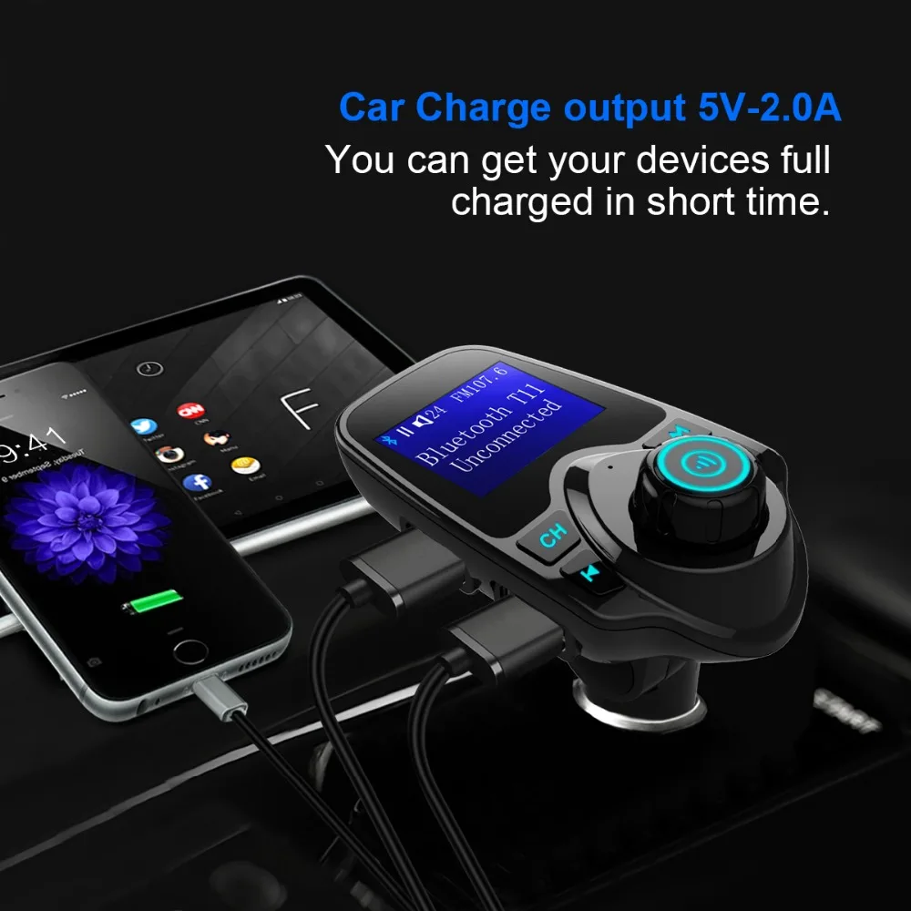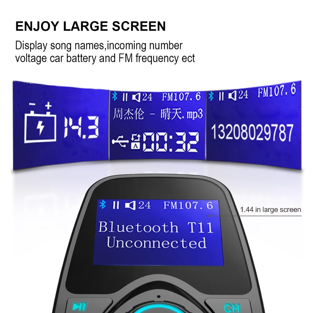 Car Mp3 Player Wireless Bluetooth Fm Transmitter FM Modulator HandsFree Car Kit A2DP 5V 2.1A USB Charger for iPhone Samsung T11