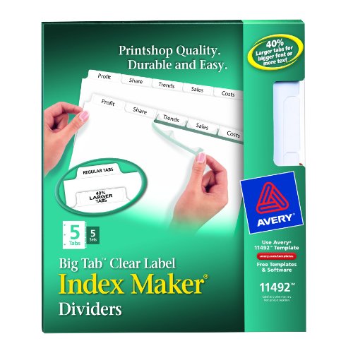 Avery Big Tab Index Maker Clear Label Dividers, White, 5-Tabs, 5 Sets (11492)