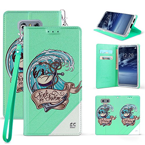-. Title : LG G6 Case PU Leather TPU 2 Tone Card Slot Magnetic Close Strap Kickstand Sink or Swim Anchor