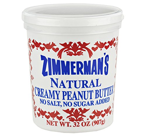 Zimmerman's Natural Creamy Peanut Butter, No Salt Added, 32 Oz. Tub (Pack of 2)