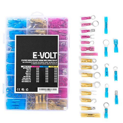 Heat Shrink Wire Connectors Kit: 270 PC Variety of Waterproof Electrical Crimp Terminals - Automotive & Marine Use. Adhesive Lined Tubing In Red Blue Yellow Butt Fork Hook Ring & Quick Disconnects Set