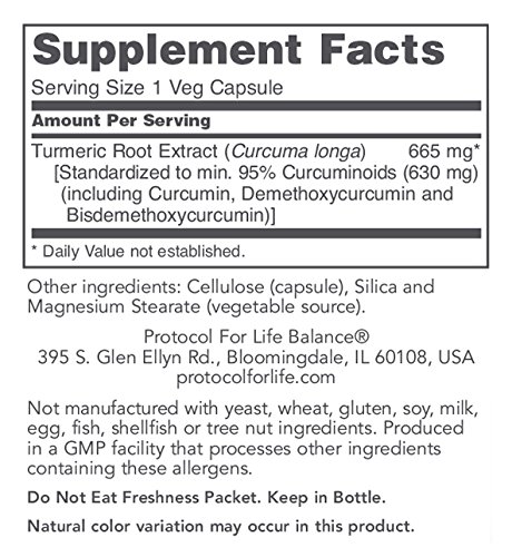 -. Title : Protocol For Life Balance - Curcumin - Turmeric Root Extract 665 mg - Reduces Joint Inflammation and helps Maintain Normal Cardiovascular Health - 60 Veg Capsules
