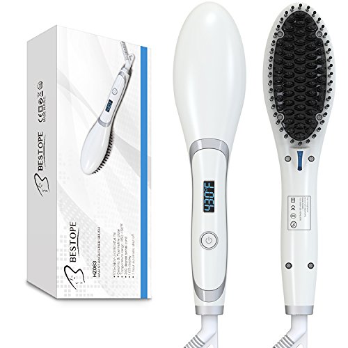 BESTOPE Hair Straightener Brush Anion Ceramic Heating Electric Straightening Brush With Anti-Scald Straightener Brush for Silky Straighten Brush(6 Temp...