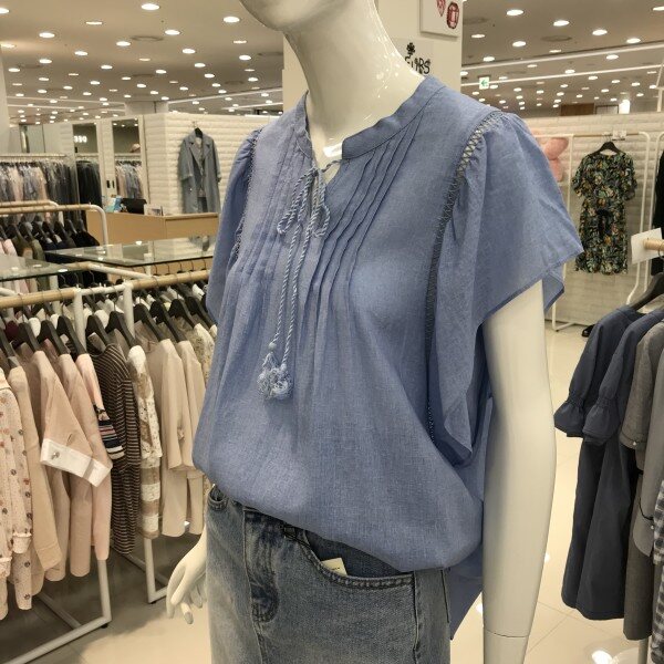 소매셔링장식에. 펀칭이있는 블 라우스입니다A라인으로 시원하고 귀여워요겨드랑이 덧되어있어서. 보이지않아요가볍고 시원하게입기좋아요