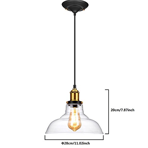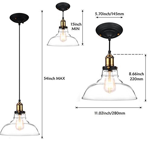 - Hanging thicker glass shade design well protects the bulb, maximizes the light and makes your room look clean, simple and perfect