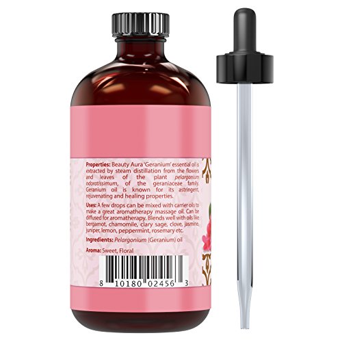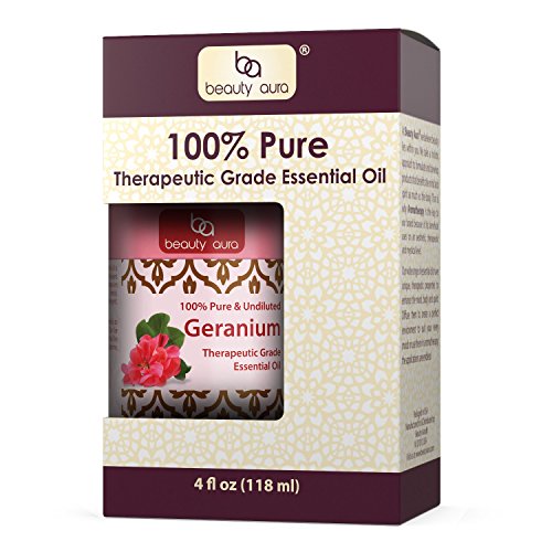 Beauty Aura Geranium Essential Oil - 4 Oz Bottle - 100% Pure Therapeutic Grade Great for Aromatherapy & Diffusers