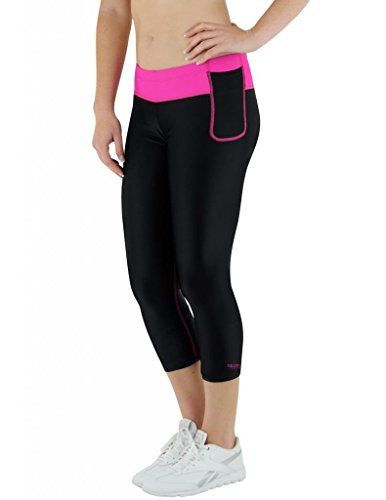 Delfin Mineral Infused Capris featuring Bio-Energy Technology. We listened to your feedback and have improved your favorite DELFIN COLLECTION! We are excited to introduce the change of the Bio-Energy Line to a Single Fabric Layer from the previous two layer design. Now has a wider waistband for a more comfortable feel and flattering look, without losing that excellent mid-torso coverage! Our Mineral Infused Capris integrate the latest technology in high performance fabric; utilizing 30 Minerals embedded in the Ink Pattern on the inside of the fabric. Minerals, activated by body heat, offer a range of benefits including muscle stimulation, improved circulation and reduced muscle fatigue to help enhance exercise. The key is the scientifically patented mineral formula which includes oxidized silicon, magnesium, alumina, and calcium. After being thermally activated, this formula creates vibration at the atomic level, resulting in energy, which it is transmitted to the body. Two key proven benefits include (1) Increased Micro-Circulation - achieved through inhibition of Rouleax formation in the blood (relating to the blood cell clotting and oxygen movement) and (2) Energy Enhancement - achieved through increase oxygen rate and skin cell vitality. Our Mineral Infused Collection includes exercise shorts, capris, high waisted shorts and high waisted capris. Suitable for everyday use and regular workouts, biking, jogging/running/walking, yoga/zumba, etc. Constructed of one layer high quality stretch Nylon/Polyester/Spandex fabric, offering great support, contouring, compression and coverage. Delfin Spa logo on bottom left front leg. We recommend hand wash and drip dry, but occasional machine washing is OK. You will find a better fitting product that maintains its great look, compression and amazing infused minerals to boost your workouts and energize your muscles!Feature
