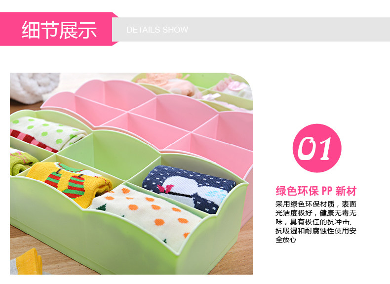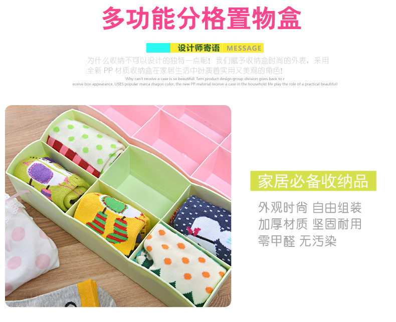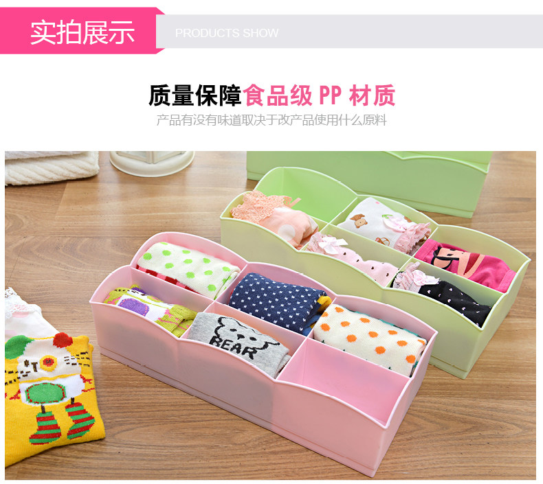 糖果色6格袜子盒 创意塑料抽屉内裤收纳盒内衣收纳盒
